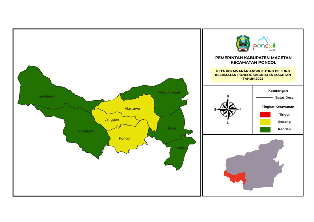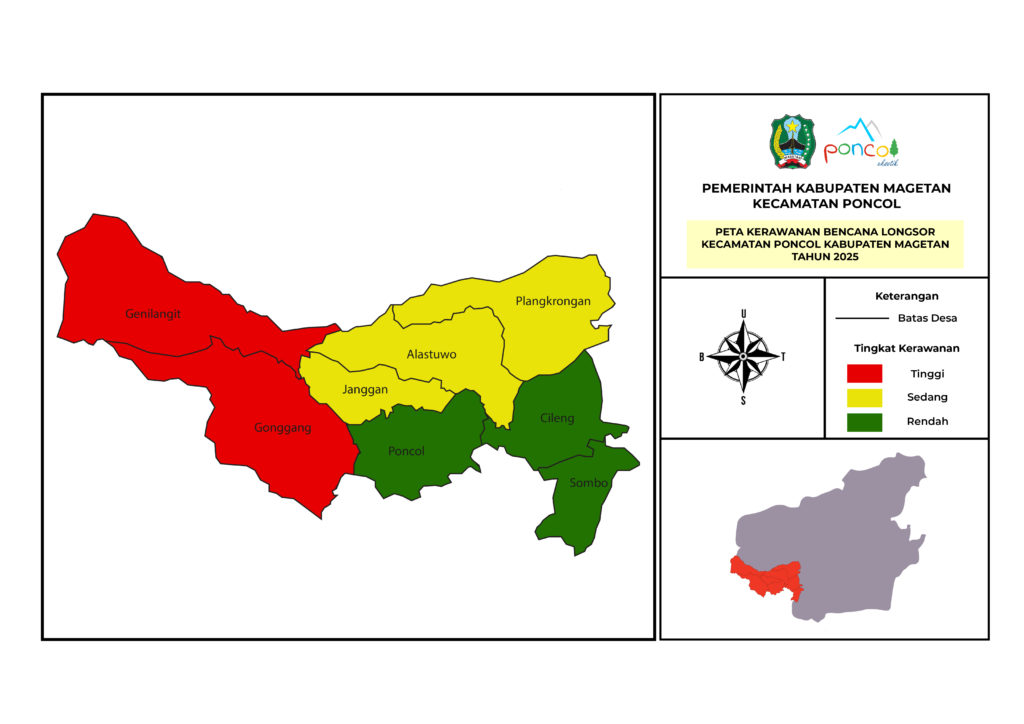 Berikut kami sajikan peta kerawanan bencana di Kecamatan Poncol :